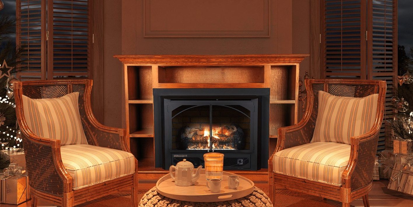 The Model 34 Contemporary providing up to 33,000 BTUs of clean heat. Standard features include screen doors, factory-installed variable speed blower, and millivolt gas valve for use with remote control or wall thermostat.